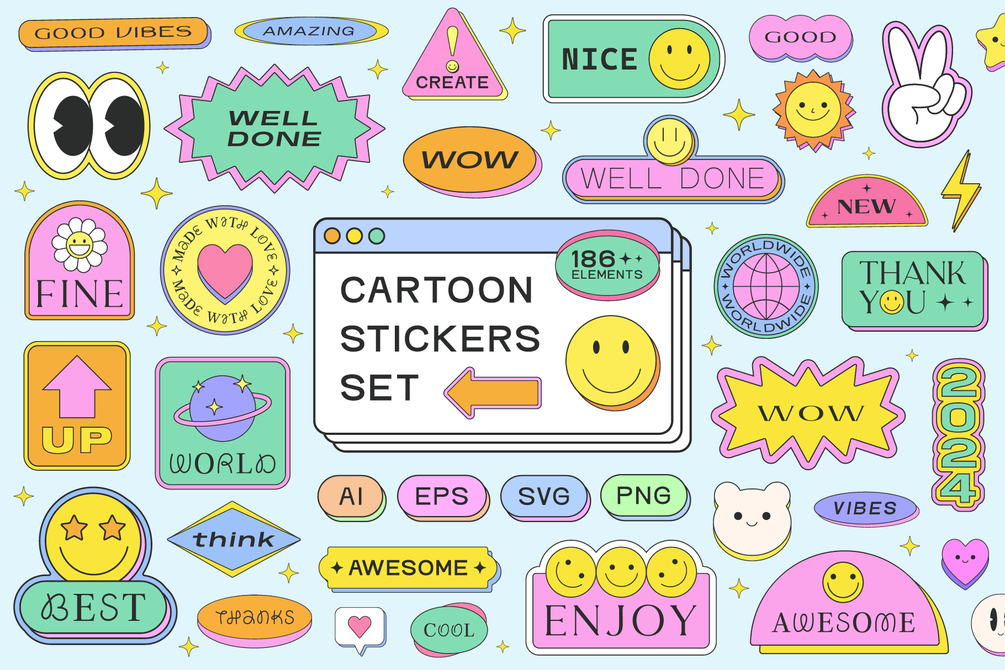 CARTOON STICKERS SET - 186 ELEMENTS