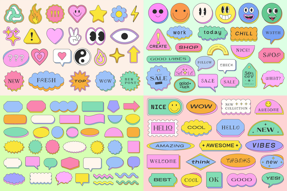- 146 Vector Stickers + 40 Vector Shapes